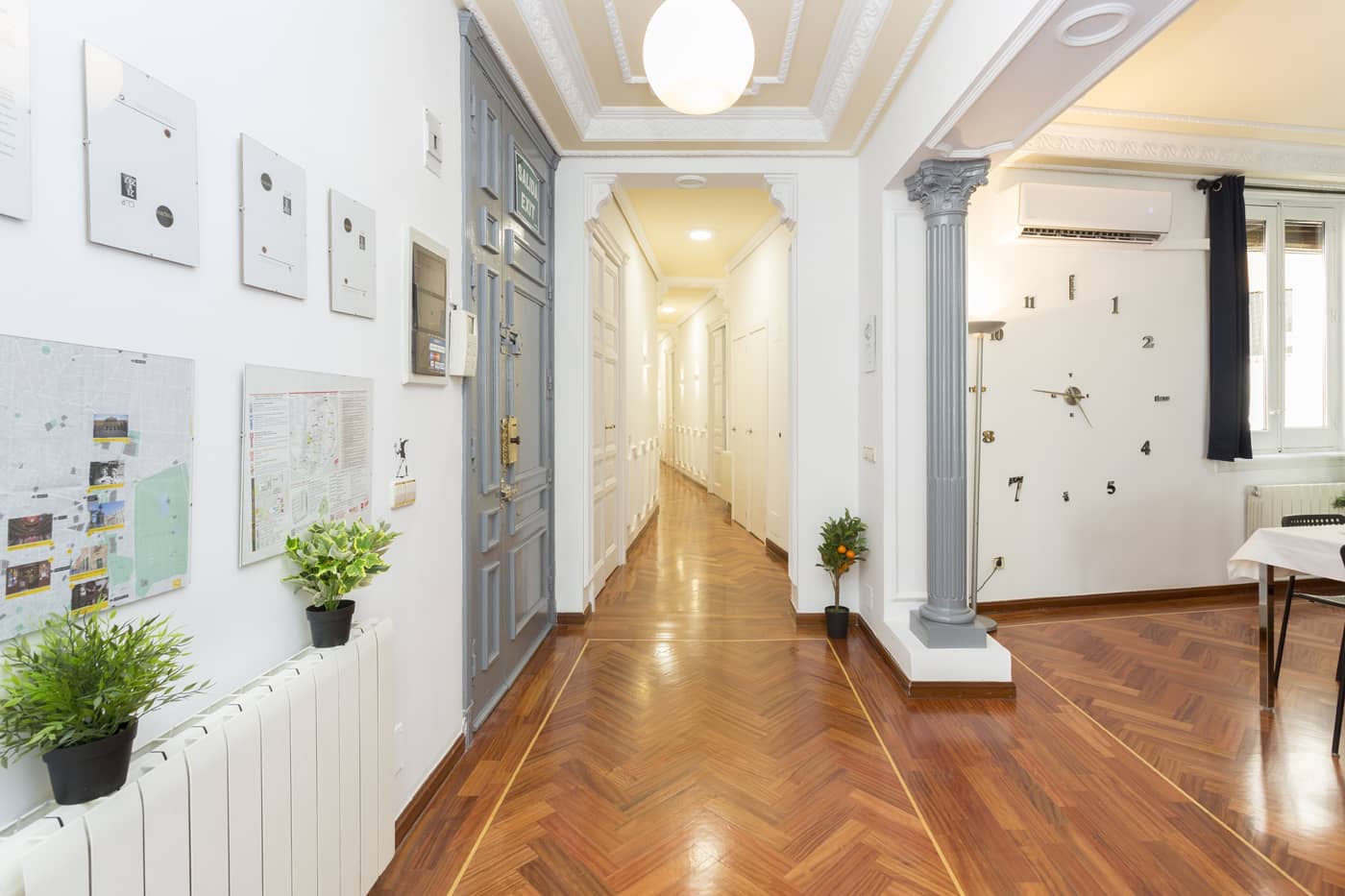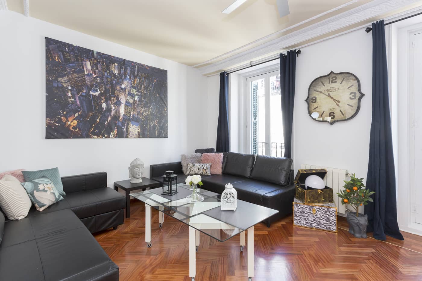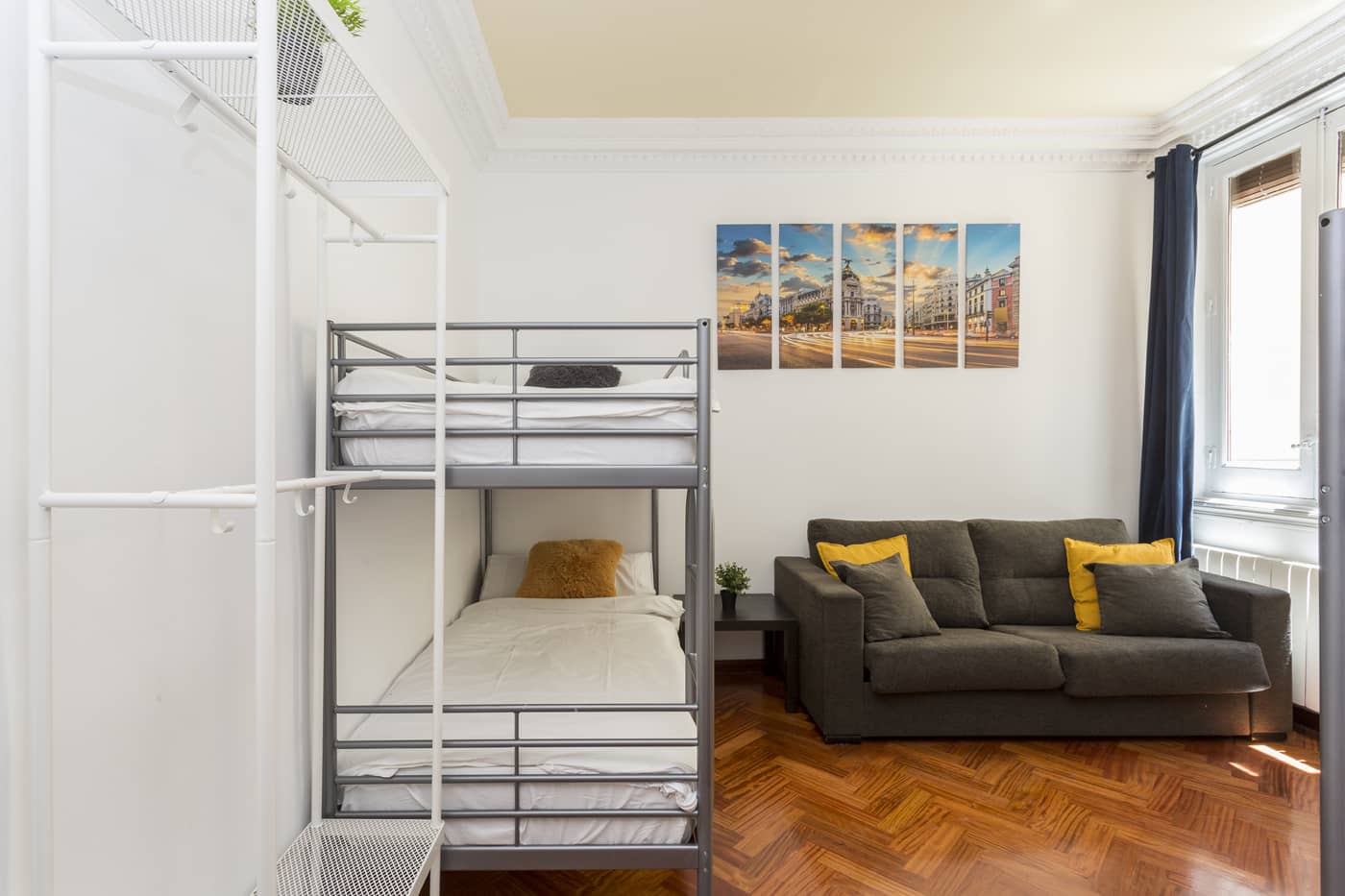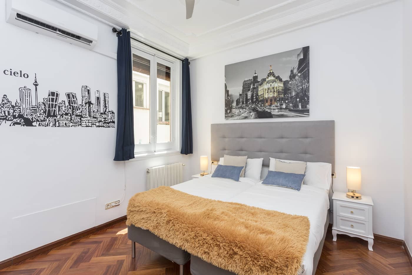Exclusivos apartamentos en pleno centro de Madrid. Luminosos, exteriores y espaciosos. Con calefacción central y aire acondicionado 24 horas. Dormitorios silenciosos. SMART TV. Wifi alta velocidad. Ascensor. Ideales para familias o grupos.