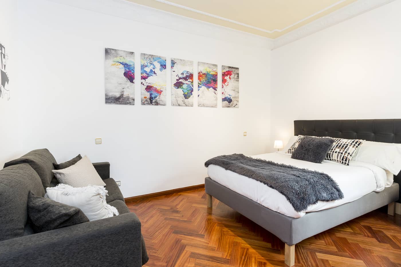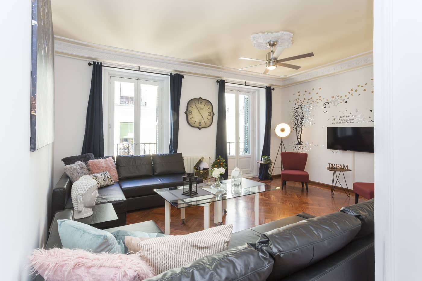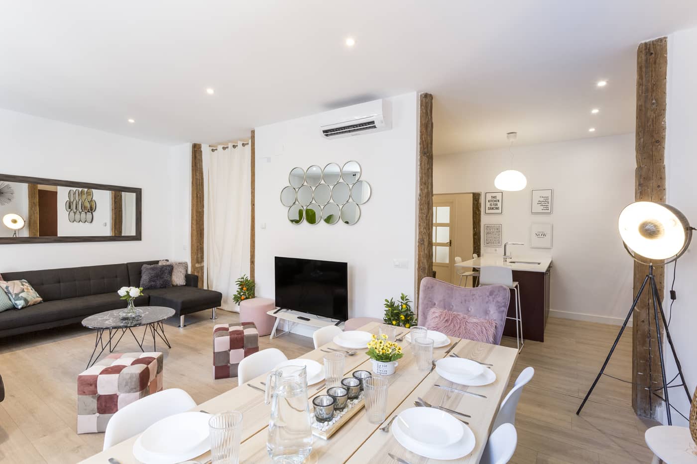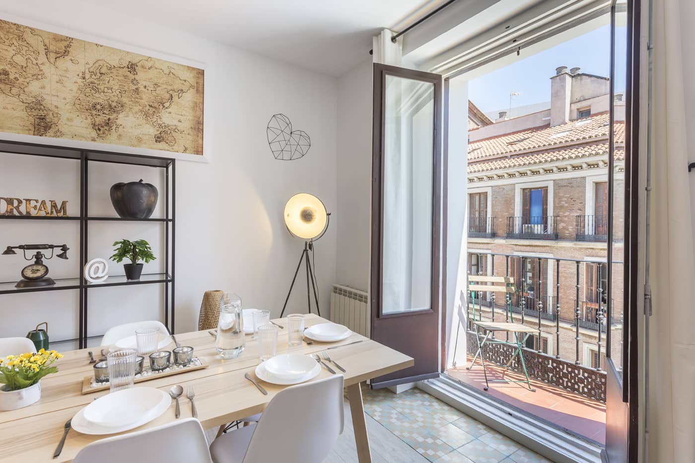 Exclusivos apartamentos en pleno centro de Madrid. Luminosos, exteriores y espaciosos. Con calefacción central y aire acondicionado 24 horas. Dormitorios silenciosos. SMART TV. Wifi alta velocidad. Ascensor. Ideales para familias o grupos.