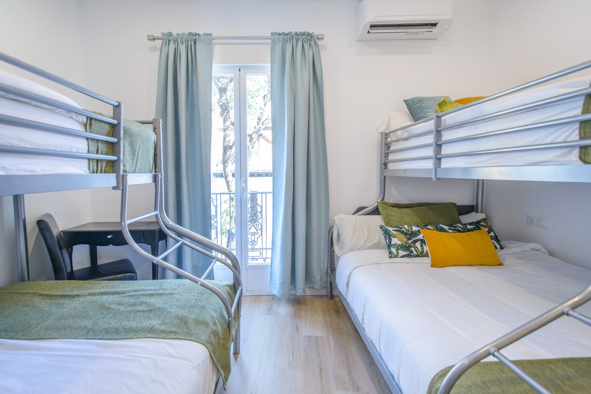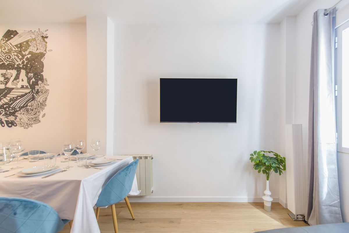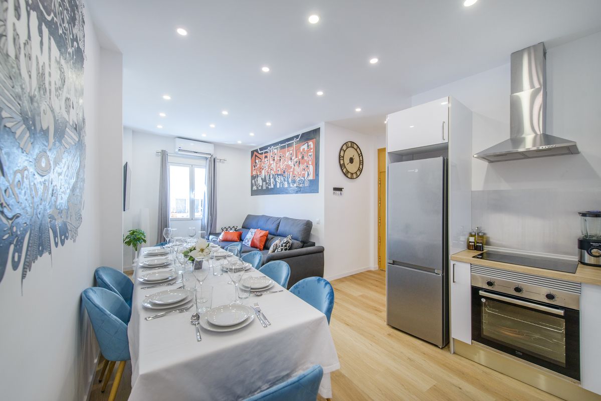 Apartment in the heart of Malasaña, in the city center. Newly renovated and fully equipped. Ideal for groups or families. Air conditioning and heating system. Metro station just a few meters away. No need for transportation to explore the city center. The Space The newly renovated space features 4 bedrooms, 3 bathrooms, a living room, kitchen, and dining area. The building has an elevator, and the apartment includes air conditioning and heating.